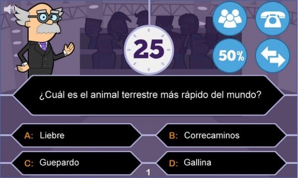 A mayor nivel, mayor el premio, pero también aumenta la dificultad de las preguntas. En cada pregunta tienes la posibilidad de usar pequeñas ayudas como 50/50, cambiar la pregunta, llamada a un amigo o preguntar al público.