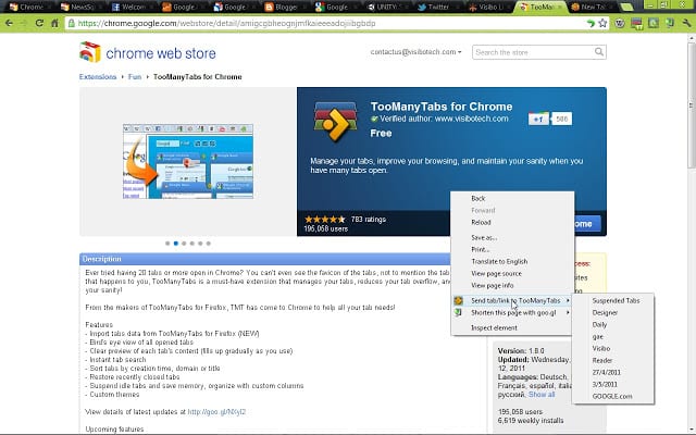 TooManyTabs es la extensión recomendada para las personas que trabajan con demasiadas pestañas, gestiona las mismas para navegar sin complicaciones y evita que las páginas se congelen por culpa de las pestañas abiertas.